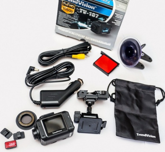 TrendVision TV-107 можно использовать не только как видеорегистратор, но и как миниатюрную переносную видеокамеру высокого качества. Регистратор для автомобиля крепится на лобовое стекло и подключается к прикуривателю. В комплекте есть крепление на присоске и крепление на двухстороннем скотче. Кронштейн видеорегистратора позволяет поворачивать его на 360°.