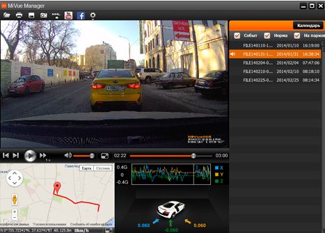 • MiVue Manager — программа для просмотра и управления данными. С ней удобно не только просматривать видео, но и делиться видеороликами в соцсетях, отслеживать маршрут на картах Гугл и даже наблюдать за направлением движения автомобиля во время экстренных ситуаций.