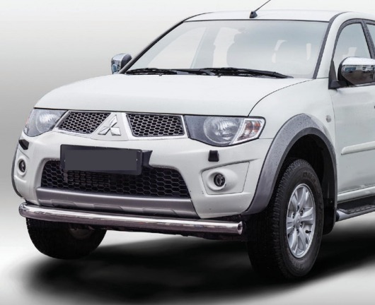Защита переднего бампера для Mitsubishi L200 – это труба на бампер из нержавеющей стали диаметром 76 мм.