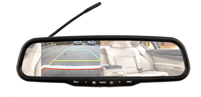 Для удобной парковки к зеркалу с видеорегистратором и монитором можно подключить камеру заднего вида — картинка с нее будет выводиться на монитор, встроенный в зеркало. Видеовход стандарта CVBS позволит подключить к устройству любую парковочную камеру.