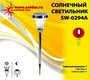 Солнечный светодиодный светильник SW-0294А - верный выбор, если Вы ищите способ обеспечить свой участок ярким, красивым освещением, но при этом не хотите тратить огромные суммы на электроэнергию. Светильник со встроенной солнечной панелью - это абсолютное энергосбережение и стильный свет для Вашего дворика. Солнечный светодиодный светильник SW-0294А имеет очень удобную форму: стержень, на котором он закреплен, можно просто воткнуть в землю в любом удобном для Вас месте.
