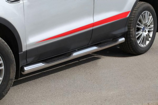 Пороги на Ford Kuga – это боковые подножки из нержавеющей стали диаметром 76 мм, которые позволяют более комфортно входить и выходить из салона автомобиля. Подножки Ford Kuga очень прочные, надежные и долговечные: они не боятся коррозии, сколов и царапин и выдерживают большие нагрузки.