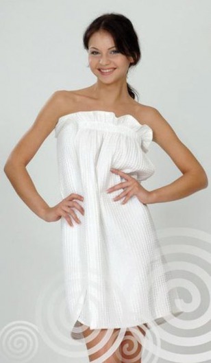Парео изготовлено из мягкой вафельной ткани — 100% хлопка. Этот материал имеет множество преимуществ: быстро впитывает влагу и так же быстро ее выводит. Хлопок приятно соприкасается с телом, не вызывает дискомфорта, отлично пропускает воздух, позволяя коже дышать. Женское парео для бани станет еще и замечательным подарком настоящей любительнице бани.