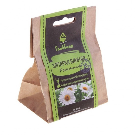 Банная запарка "Ромашка" — это сбор на основе ромашки в 20 фильтр-пакетиках. Запарка используется как природный антисептик, очищает дыхательные пути. Отвар из ромашки обладает противовоспалительным, кровоостанавливающим, болеутоляющим, успокаивающим действием. Ромашка отлично сочетается с чабрецом и душицей.