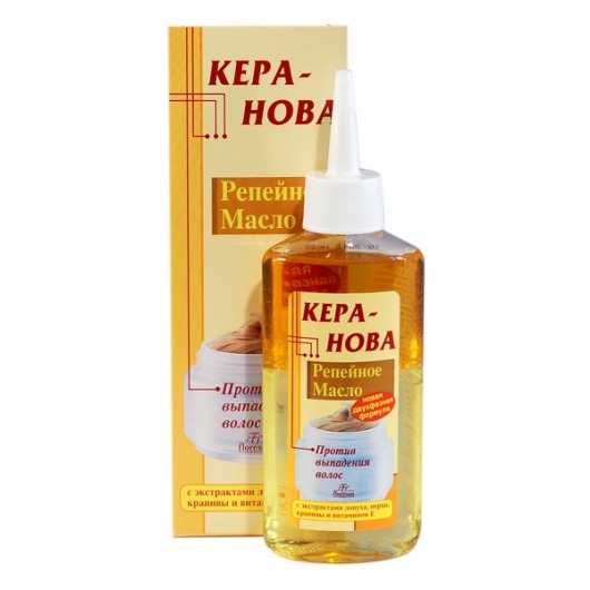 Двухфазное репейное масло для волос Кера Нова — косметическое средство против выпадения волос, для укрепления и улучшения их роста. Натуральные экстракты лопуха и крапивы содержат большое количество целебных компонентов, которые питают и укрепляют корни волос, улучшают структуру, препятствуют выпадению. Экстракт перца дополнительно создает термо-эффект на коже головы, вызывая прилив крови к корням волос и повышение уровня обмена веществ.