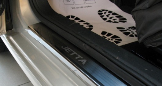 Накладки на пороги дверей Volkswagen Jetta не только обеспечивают защиту верхней и боковой поверхности внутреннего порога, но и отлично вписываются в интерьер автомобиля, подчеркивая его стиль и индивидуальность. C монтажом проблем не возникнет: установка накладок на внутренний порог для Volkswagen Jetta производится на штатные места с помощью скотча 3M.