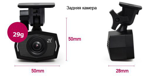 Основная камера авторегистратора скрытно крепится за салонным зеркалом (на кронштейн или на 2-сторонний скотч), а дополнительная подключается к ней с помощью 7-метрового провода и устанавливается на заднем стекле. Обе камеры стильные, легкие и компактные (задняя камера, к примеру, весит всего 29 г). И при этом они совершенно незаметны снаружи салона — а значит, можно не беспокоиться о том, что  их попытаются украсть.