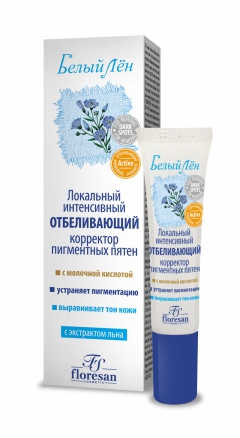 Интенсивный отбеливатель, корректор пигментных пятен Белый лен предназначен для локального воздействия на пигментные пятна различного происхождения (веснушки, пятна беременности, остатки загара и т.д.). С помощью удобной упаковки вы сможете легко нанести средство непосредственно на нужные участки.