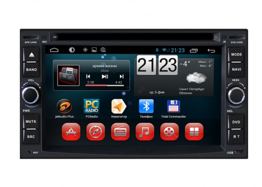 Штатное головное мультимедийное устройство позволяет прослушивать аудиофайлы различных форматов, просматривать видео (в том числе в HD-формате) и фотографии как с внутренней памяти устройства (8 Гб), так и с внешних носителей и SD карт памяти. Вы также можете слушать аналоговое или интернет-радио или смотреть видео онлайн. Или подключить цифровой ТВ-тюнер, чтобы смотреть цифровые каналы прямо на экране устройства. А еще у вас есть возможность подключить DVD-привод и смотреть фильмы и управлять DVD-меню прямо с сенсорного экрана магнитолы.