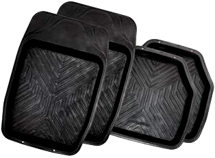 Автоковрики TER-150 изготовлены из термостойкой резины. Не жесткие, не теряют формы, не скручиваются и не загибаются в уголках. В комплекте 4 коврика. Цвет: черный. Эта модель относятся к коврикам-ванночкам. Они превосходно собирают влагу. Идеальны для применения зимой и осенью. Размеры: 69х48 см, 47х48 см.