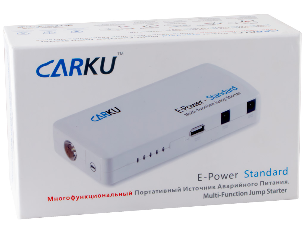 Зарядно-пусковое устройство CARKU E-Power Standart поможет запустить двигатель вашего автомобиля при отказе штатного аккумулятора, например, в сильные морозы. Благодаря разъёму USB и переходникам, имеющимся в комплекте, можно заряжать смартфоны, планшеты, ноутбуки, а так же питать автомобильные холодильники и насосы.