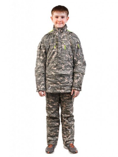 Защитный костюм от клещей для старшеклассников состоит из куртки с капюшоном и брюк.
