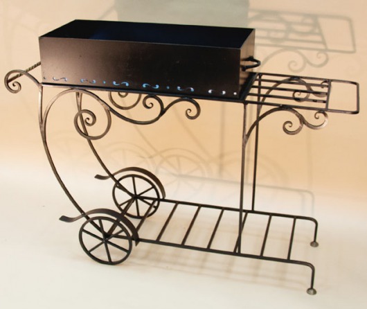 Кованый мангал для дачи М24 — простая и изящная модель, которая не только прекрасно впишется в дизайн любого загородного участка, но и пригодится во время пикника. Разборный кованый мангал состоит всего из 2-х частей: ящика жаровни и металлической стойки с дровницей — складывать его просто, быстро и удобно. В сложенном состянии этот переносной мангал легко поместится в багажнике, а за счет 2-х небольших металлических колес уже установленный мангал можно будет без особых проблем перемещать с одного места на другое.