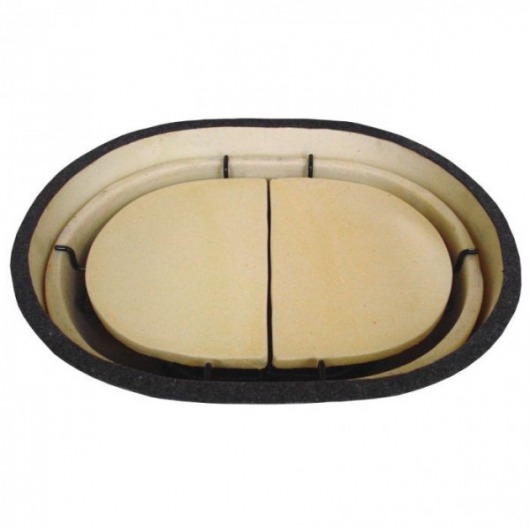 Чтобы использовать гриль Primo Oval XL для приготовления домашних копченостей или для томления или запекания, необходим рефлектор, который отсекает от продуктов огонь, исходящий от углей. С помощью такого керамического рефлектора, состоящего из 2-х пластин, гриль "переключается" в режим горячего копчения.