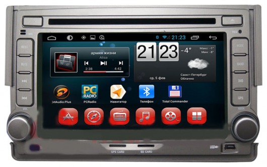 Штатное головное мультимедийное устройство позволяет прослушивать аудиофайлы различных форматов, просматривать видео (в том числе в HD-формате) и фотографии как с внутренней памяти устройства (8 Гб), так и с внешних носителей и  SD карт памяти. Вы также можете слушать аналоговое или интернет-радио или смотреть видео онлайн. Или подключить цифровой ТВ-тюнер, чтобы смотреть цифровые каналы прямо на экране устройства. А еще у вас есть возможность подключить DVD-привод и смотреть фильмы и управлять DVD-меню прямо с сенсорного экрана магнитолы.