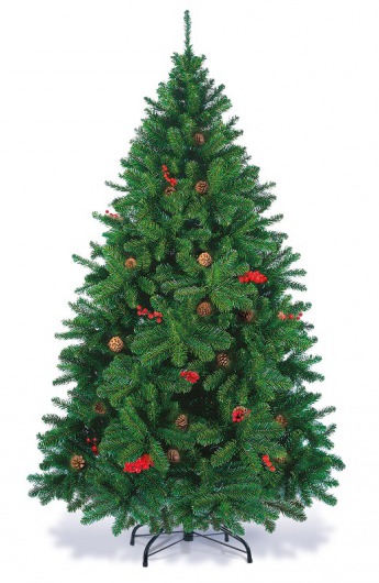 Искусственная сосна «Новогодняя сказка» от ЕлкиТорг по внешнему виду совершенно неотличима от настоящей живой ели. Стройный конусовидный силуэт и пушистая зеленая хвоя с настоящими еловыми шишками и веточками рябины только подчеркивают это сходство. Такая елка высотой в 150 см станет настоящим украшением для вашего дома или офиса.