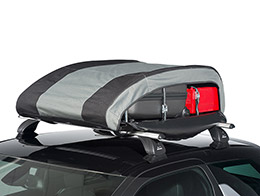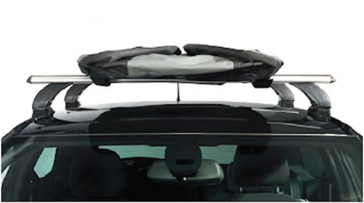 Обратите внимание! Мягкий автобокс на крышу устанавливается не на саму крышу автомобиля, а на багажник. Сначала необходимо закрепить на крыше поперечины багажника (см. фото 1), а потом уже на них ставится бокс (как на фото 2). Если у вас нет поперечников, вы можете подобрать их для своей марки авто здесь.