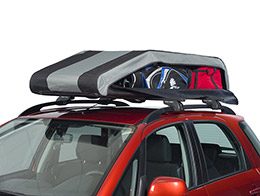 Сумка-бокс на крышу автомобиля имеет стальные профили в дне, легко крепится к багажнику U-скобами и просто собирается в легкую и удобную сумку-чехол.