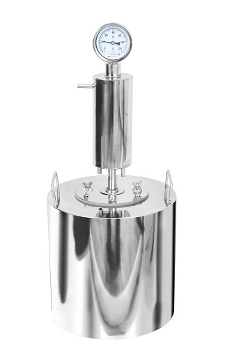 Комплектация: Перегонная ёмкость, встроенный термометр, холодильник, крышка-фланец, 6 металлических барашков, силиконовые прокладки под крышку фланец и холодильник, упаковка, техпаспорт, гарантийный талон.