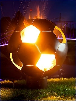 Основная конструкция чаши и ножка произведены из стали толщиной 3 мм, покрытой краской огнеупорной. Данная чаша для костра станет прекрасным подарком футбольным болельщиком.