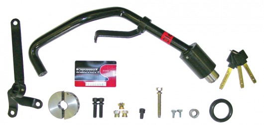 Рулевой блокиратор Sentry Spider очень удобен в применении. Достаточно вставить ключ в личинку и повернуть — и ригель запорного механизма надежно блокирует рулевой вал. При этом личинка замка располагается в доступном месте, а вам не нужен никакой штырь!