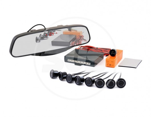 Парковочный радар Silver Star — это компактное устройство, которое легко избавит вас от трудностей с парковкой автомобиля. Данный парктроник состоит из светодиодного дисплея в форме зеркала и 8-ми датчиков черного цвета с диаметром 20 мм. 4 датчика устанавливается на задний бампер и еще 4 на передний. Все это позволяет вам абсолютно безопасно парковаться и совершать другие маневры даже в темное время суток, в сумерках или при плохой погоде.