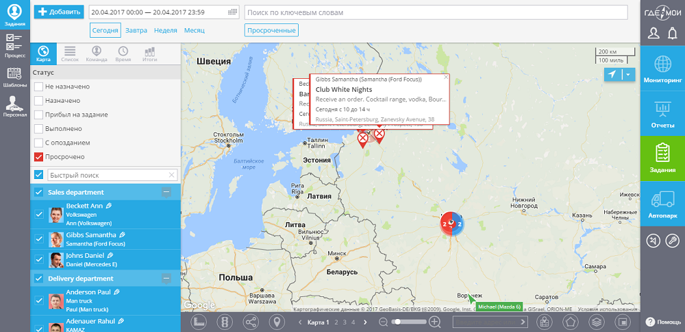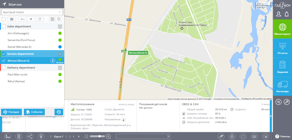 На изображениях снизу представлен интерфейс системы слежения gdemoi.ru с примерами работы и отображения информации.