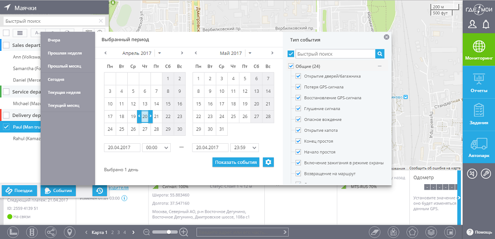 Отслеживать местоположение объекта онлайн можно с компьютера или смартфона через официальный сервис gdemoi.ru. Через сервис ГдеМои имеется возможность не только просматривать текущие координаты, но и формировать отчеты за интересующий период. В настройках ГдеМои предусмотрена возможность оповещения о важных событиях, таких как прибытие водителя в точку назначения, запрос помощи на дороге, незапланированное отклонение от маршрута или остановка ТС, поломка автомобиля и десяток других оповещений.