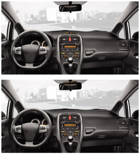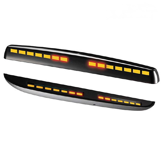 Парковочный радар включает 8 датчиков черного цвета и 2 индикатора. Задний индикатор устанавливается на зеркало заднего вида, передний — на приборную панель автомобиля и/или зеркало заднего вида. А задний индикатор комплектуется ещё двумя съемными корпусами: серого и черного цвета. Благодаря этому вы можете сделать так, чтобы он органично вписался в ваш салон.