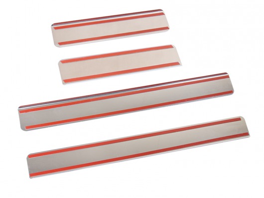 Накладки на металлические пороги дверей Lada Largus с логотипом авто не только обеспечивают защиту верхней и боковой поверхности внутреннего порога, но и отлично вписываются в интерьер автомобиля, подчеркивая его стиль и индивидуальность. C монтажом проблем не возникнет: установка накладок на внутренний порог для Лада Ларгус производится на штатные места с помощью скотча 3M.