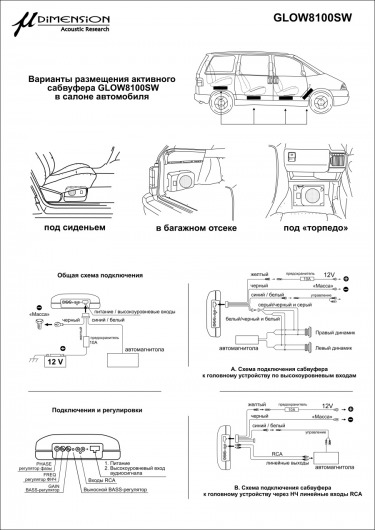 Активный сабвуфер 8" µ-Dimension Glow 8100SW оснащен встроенным усилителем мощности. Небольшие габаритные размеры корпуса позволяют размещать сабвуфер не только в багажнике, но и под сиденьями в салоне автомобиля. Данное устройство представляет собой простое и бюджетное решение для штатных аудиосистем любых автомобилей. Двух-катушечный сабвуферный динамик в 8 дюймов свободен в литой алюминиевой корзине, свободной от вибрации обеспечивает динамичную картину звуковой сцены. Прекрасная глубина баса и высокая отдача без искажений, которая отличает этот сабвуфер от большинства плоских активных сабвуферов в пластиковых корпусах. Стандартная комплектация включает в себя все необходимые аксессуары для подключения этого динамика как по RCA, так и по выходам высокого уровня. Регулировка общего уровня звуковой сцены обеспечивается выносным стильным регулятором баса.