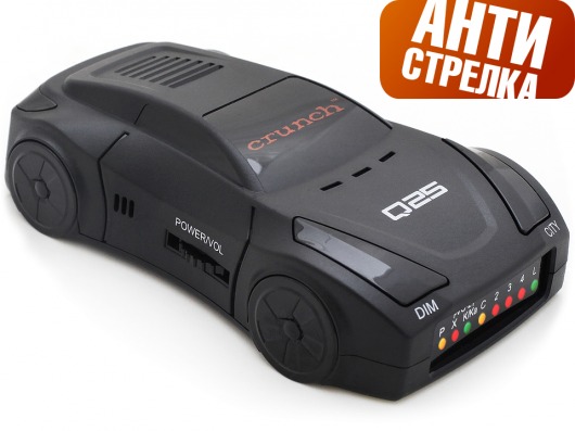 Радар-детектор Crunch Q25 STR многофункциональный и надежный. Его корпус сделан в виде маленького автомобиля, что смотрится очень оригинально. Прибор быстро обнаруживает сигналы полицейских радаров, лидаров, которые чаще всего используются в России и других странах СНГ. Кроме того, Crunch Q25 STR обнаруживает радарный комплекс Стрелка на расстоянии до 1 км!