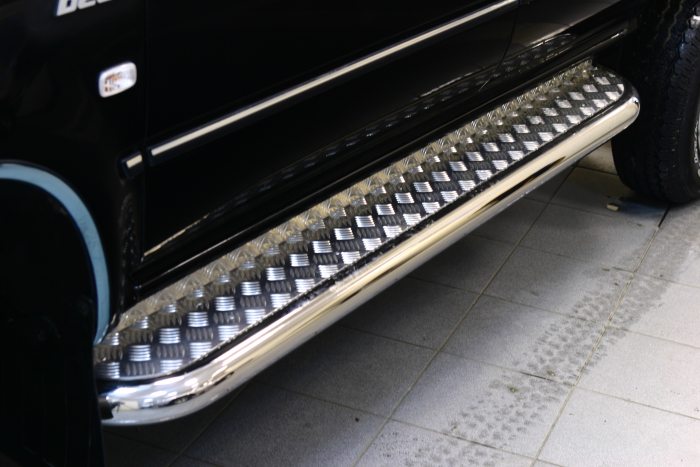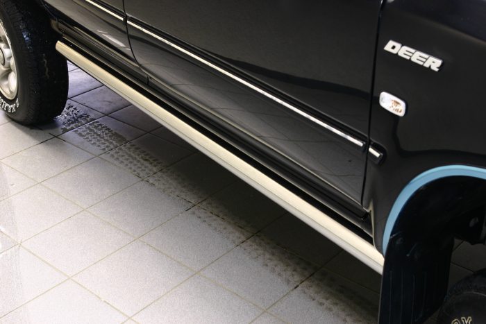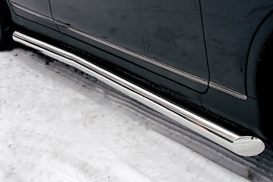 Боковые пороги на Hyundai Terracan из нержавеющей стали диаметром 60 мм не боятся коррозии, сколов и царапин и выдерживают большие нагрузки. Боковые подножки-пороги с листом сделаны специально для автомобилей Hyundai Terracan от 2005 г.в., легко устанавливаются и стильно смотрятся. В комплекте вы получите 2 подножки.